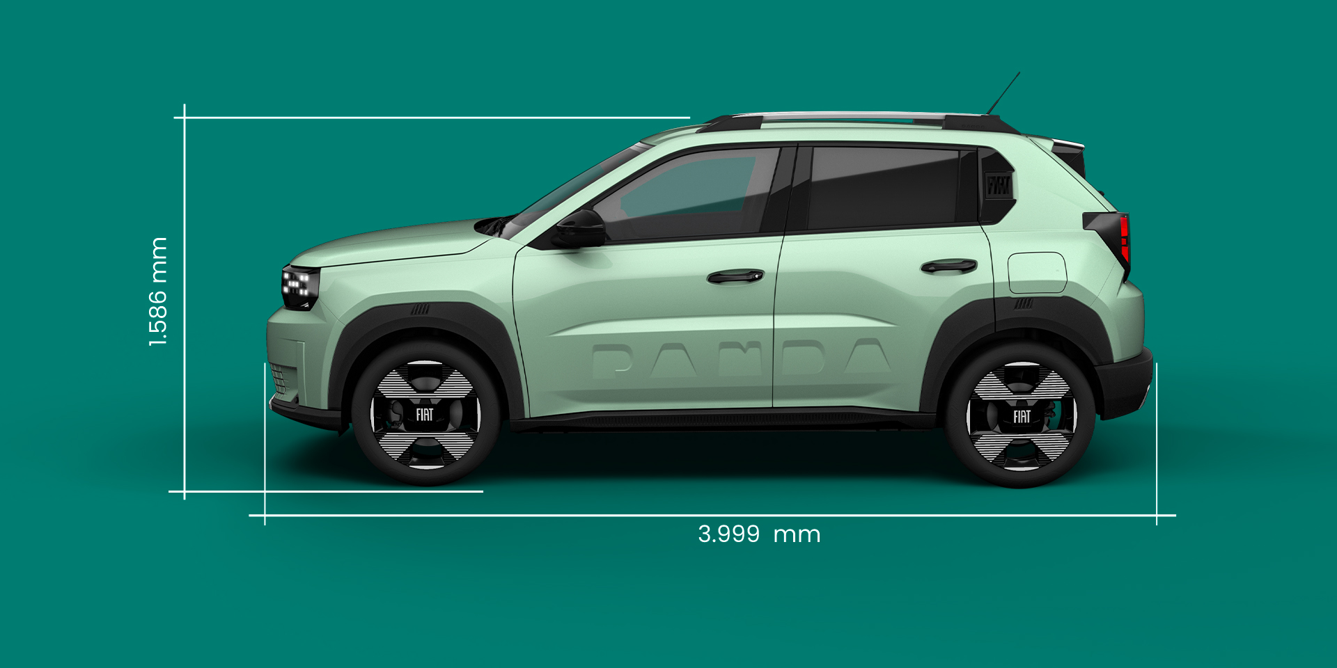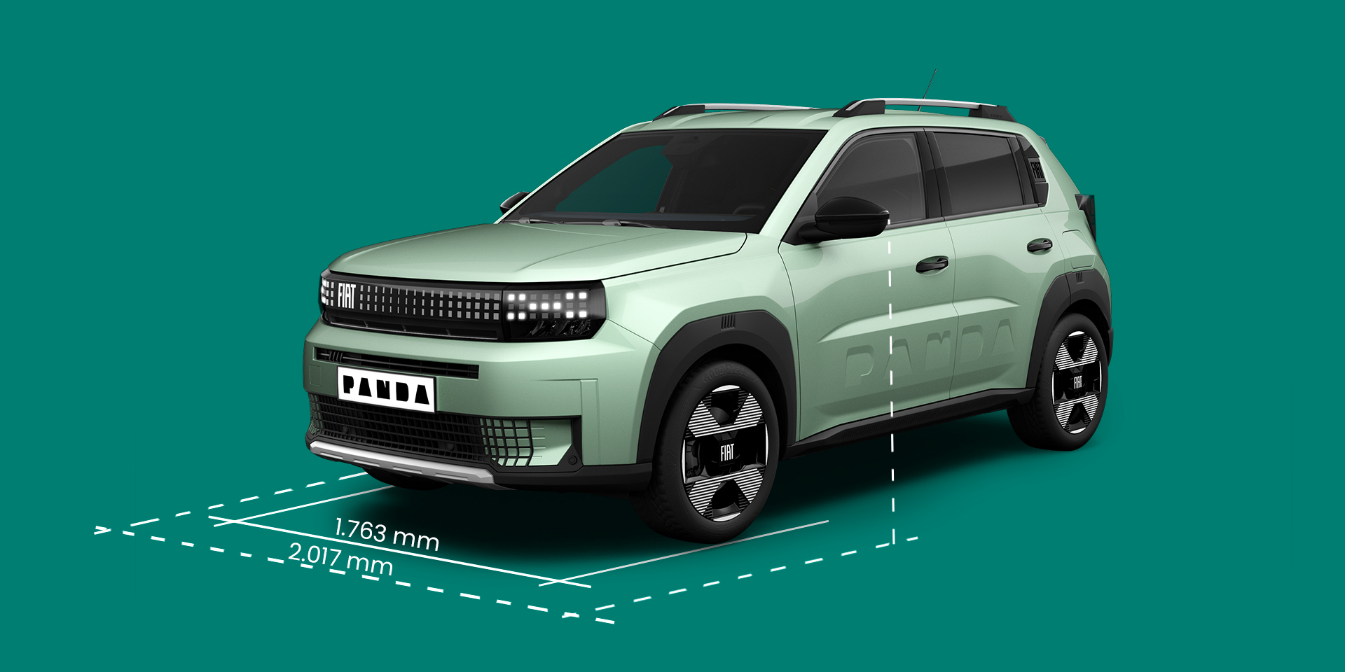 | 2017 mm (specchietti chiusi) | 3999 mm | 1586 mm (senza antenna) | 412L |